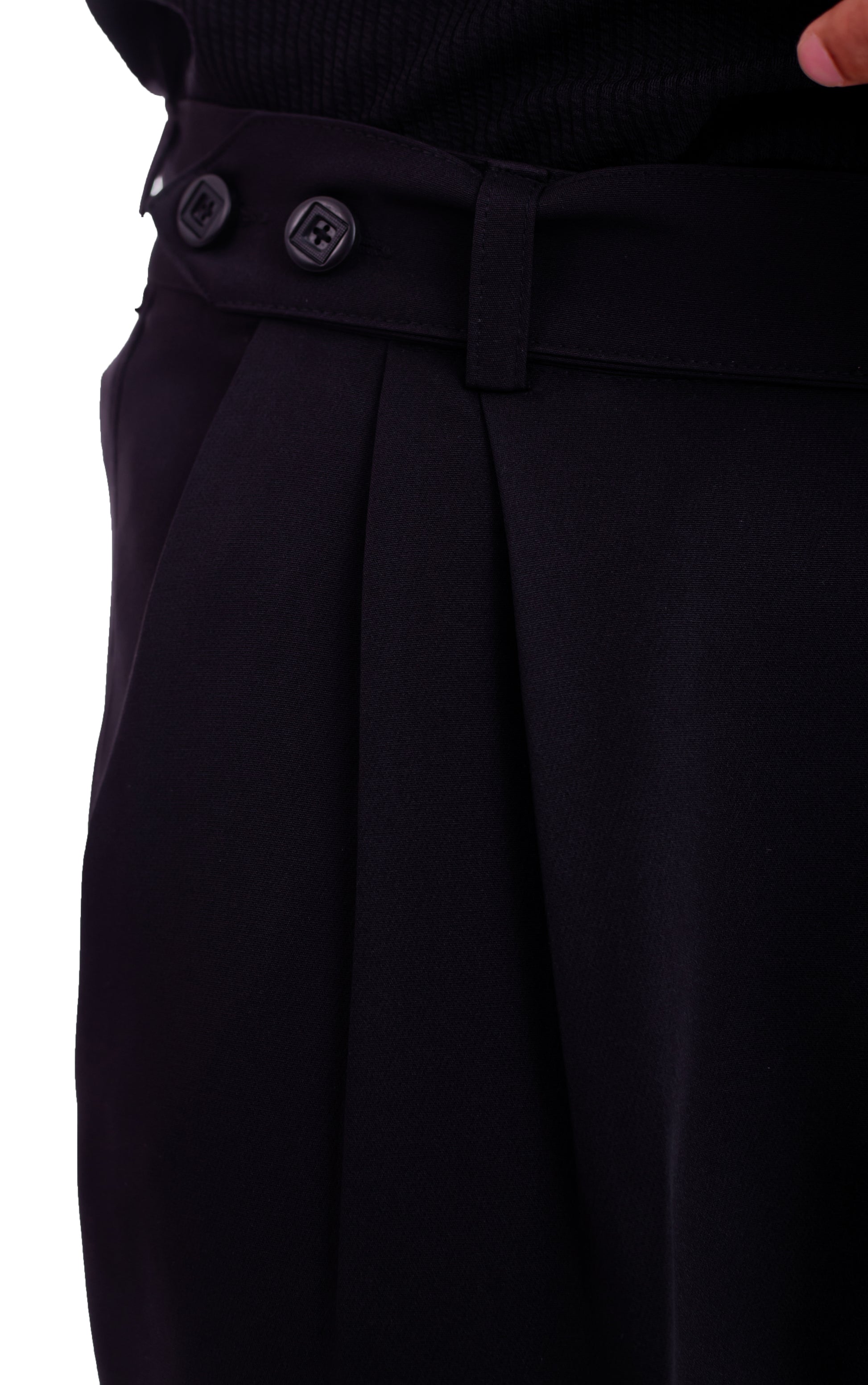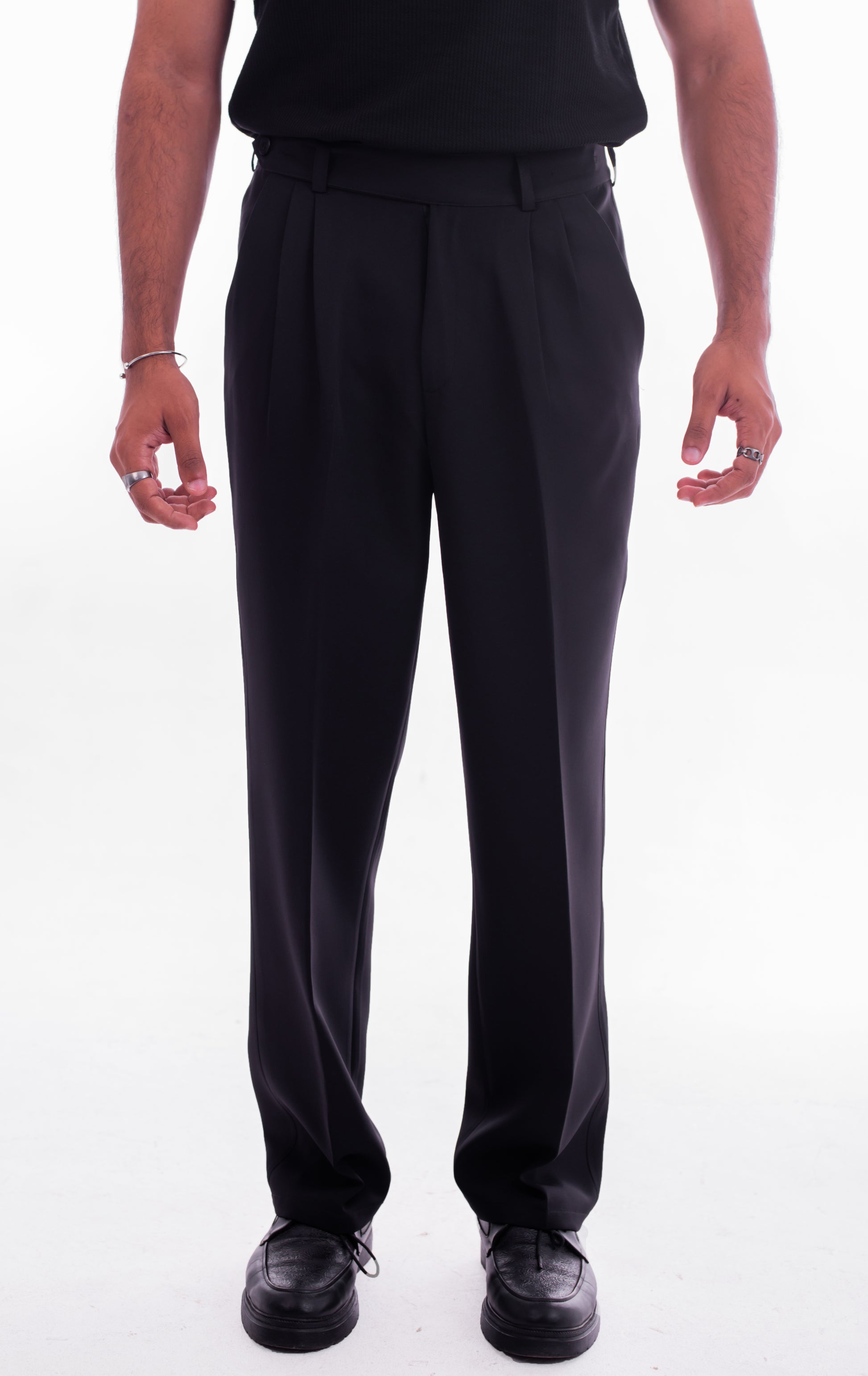 Tailored yet relaxed, these black trousers are crafted from soft rosaline fabric for a structured drape with effortless flow. Designed with a loose fit and clean lines, they bring a refined ease to everyday dressing.
